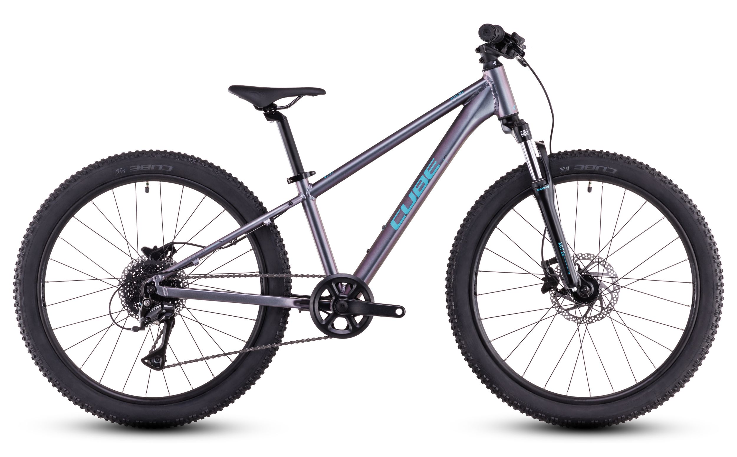 Das Acid 240 Disc ist ein Mountainbike, das die Kids restlos begeistern wird – leicht, stabil und voll ausgestattet mit allem, was es für jede Menge Bike-Action und Zweiradabenteuer mit Freunden und Familie braucht. Dank leistungsstarker hydraulischer Scheibenbremsen mit auf kleinere Hände angepassten Hebeln können die Youngsters ihr Bike kontrolliert anhalten. Eine Suntour Federgabel sorgt für top Fahrkomfort und Spurtreue auf ruppigen Strecken. Die breit gefächerte 8-Gang Schaltung ist supereinfach zu bedienen und macht selbst steilere Anstiege zum Kinderspiel. Übrigens wurden auch die anderen Komponenten – Sattel, Lenker und Griffe – für kleinere Fahrer dimensioniert. Auf geht’s, das nächste Abenteuer wartet schon!