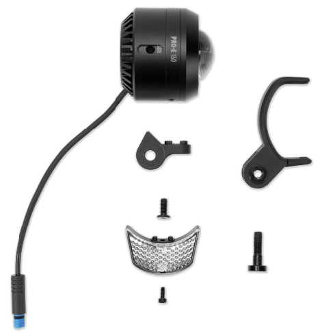 Das ACID E-Bike Frontlicht PRO-E 150 vereint effiziente LED-Leistung mit einem neu entwickelten konvexen Linsendesign, geringem Gewicht und kompakten Abmessungen. Die Lichtleistung von 150 Lux / 440 Lumen mit automatischer Tagfahrlicht-Funktion sorgt dafür, dass man bei jedem Wetter und zu jeder Tageszeit gut sehen und gesehen werden kann. Der IPX6-Schutz macht das Licht unempfindlich gegenüber starkem Regen und Spritzwasser aus jeder Richtung. Die StVZO-Zertifizierung garantiert, dass das Licht allen deutschen Straßenverkehrsvorschriften entspricht. Ein spezieller, ebenfalls zugelassener Reflektor kann unkompliziert an der Unterseite angebracht werden. Die Montage ist dank vollständiger Kompatibilität mit dem GoPro-System einfach und universell.
