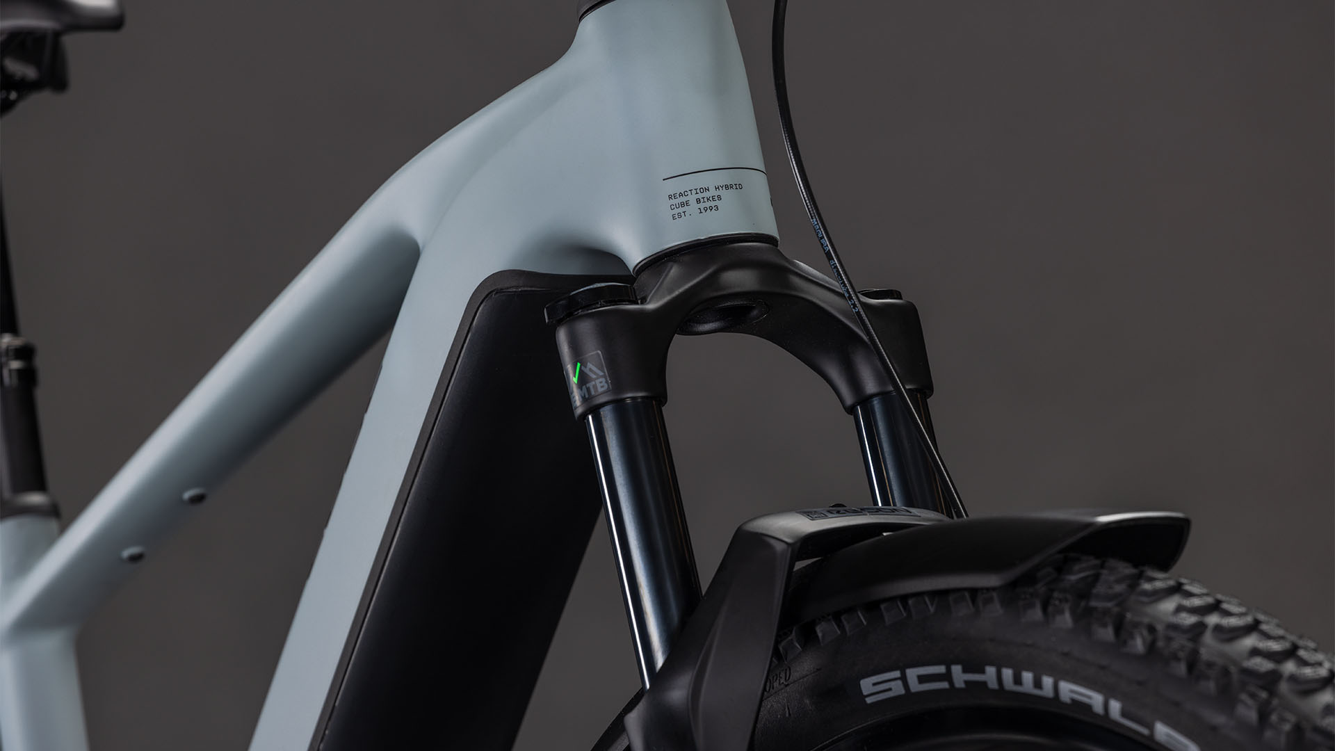 Das Reaction Hybrid Race FE steckt voller praktischer Details. Zum einen ist es standardmäßig mit Schutzblechen, einem robusten Gepäckträger, einem sauber ins Design integrierten Beleuchtungssystem und einem stabilen Seitenständer versehen. Außerdem mit einer versenkbaren Sattelstütze für optimiertes Handling auf steilen Trails. Zum anderen macht die breit gefächerte 12-fach Transmission 90 von Sram selbst anspruchsvolle Routen zum Kinderspiel. Für höchsten Fahrkomfort und 1a-Kontrolle haben wir 2.6 Zoll breite, griffige Schwalbe Pneus und eine einfach einstellbare Rockshox Recon Silver Luftfedergabel mit 120 mm Federweg (100 mm bei den kleinsten Rahmengrößen und den Tiefeinsteiger-Modellen) verbaut. Apropos Kontrolle: Die hydraulischen Louise 4-Kolben-Scheibenbremsen von Magura verzögern das Bike selbst bei Nässe zuverlässig und sicher. Wir haben uns also um alles gekümmert – jetzt heißt's aufsitzen und Spaß haben!