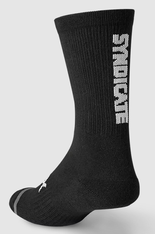 Die 8" Defend Syndicate Socken sind trailtaugliche Socken, die für anspruchsvolle Fahrten und alles, was der Tag so mit sich bringt, entwickelt wurden. Diese Socken mit hoher Polsterung unterstützen das Fußgewölbe durch Kompression, und die trail-spezifische Polsterung an Ferse, Zehen und Schienbein sorgt für ganztägigen Komfort. Die flache Zehenkonstruktion verhindert Reibung und Irritationen während der Fahrt, und mit dem Rippstrick-Obermaterial, werden diese bei der ganzen Fahrt oben bleiben.