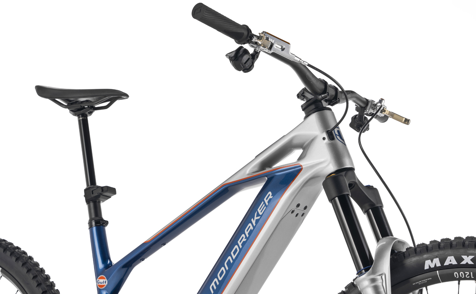 Basierend auf der Crafty RR SL, wurde die Gulf Edition mit exklusiven High-End-Komponenten weiter veredelt: DT Swiss HXC 1200 Carbon-Laufräder, Trickstuff Maxima Bremsen – vollständig aus CNC-gefrästem 7075-Aluminium, mit Vierkolben-Zangen und 203-mm-Scheiben. Diese Bremsen, makellos verarbeitet, sind eine Hommage an die Präzision und Technologie, die auch im Cockpit des Porsche Kremer 8 zu finden sind – eine Symbiose aus Geschichte, Motorsport und Mountainbiken, verdichtet in einem einzigen Bike: der Crafty Unlimited Gulf Edition.