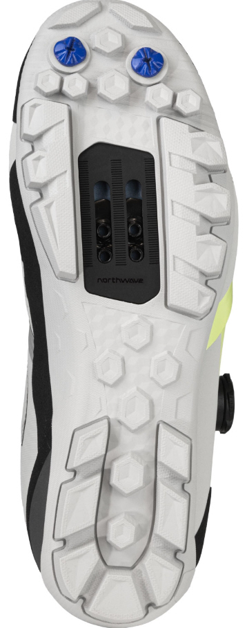 - Jaws Evo Carbon-Sohle: Mit Steifigkeitsindex 4 für effiziente Kraftübertragung, ergänzt durch Gummieinsätze für sicheren Grip auf jedem Untergrund.