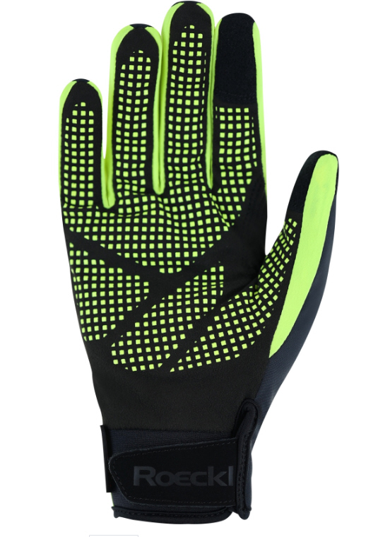 Sportives Design, top Performance, hoher Reflect-Anteil: Der Winterradhandschuh RAPALLO überzeugt nicht nur mit seinem dynamischen Look, sondern auch mit viel Funktionalität. Elastisches VaporFlex Polyester-Material an der Oberhand ermöglicht angenehme Bewegungsfreiheit für die Hände und Finger beim Biken, außerdem wurde es ohne den Einsatz umweltschädlicher PFCs wasserabweisend hergestellt. Wasserdicht, winddicht und zugleich effizient atmungsaktiv macht den Handschuh die ROECK-TEX MEMBRANE. Die Innenhand aus wasserabweisend ausgerüstetem DURASENSE Synthetiksuede mit ALL-WEATHER-GRIP Silikonisierung sorgt für einen rutschfesten Griff am Lenker, egal ob bei Trockenheit oder Nässe. Durch den elastischen, nahtlos übergehenden Neoprenbund lässt sich der RAPALLO zudem einfach an- und ausziehen und schließt optimal am Handgelenk ab. Und für noch besseren Sitz wird er mit einem Klettriegel fixiert. Erstklassigen Kälteschutz in Kombination mit einem hervorragenden Trageklima gewährleisten eine zusätzliche Isolierung und ein feuchtigkeitsregulierendes Easy-Dry Futter. Was dieses Modell zudem auszeichnet, sind zahlreiche reflektierende Designelemente an den Stellen, die beim Griff am Lenker besonders exponiert sind. Und weil es TOUCHSCREEN COMPTIBLE ist, lassen sich Nachrichten oder Anrufe mit Handschuh erledigen. Erhältlich in klassischem Schwarz oder Schwarz mit sportivem Neongelb und farblich kontrastierender Innenhand – je mit Grau über den Fingerknöcheln und silbernem Roeckl Sports Reflect-Logo. Bei 30 Grad maschinenwaschbar.