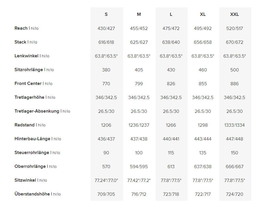 Der steile Sitzwinkel hält den Fahrer auf den steilen Anstiegen, die zu den noch steileren Abfahrten führen, immer zentral in der richtigen Position. Der Sitzwinkel wird mit zunehmender Rahmengröße steiler, sodass die Balance in jeder Größe passt.