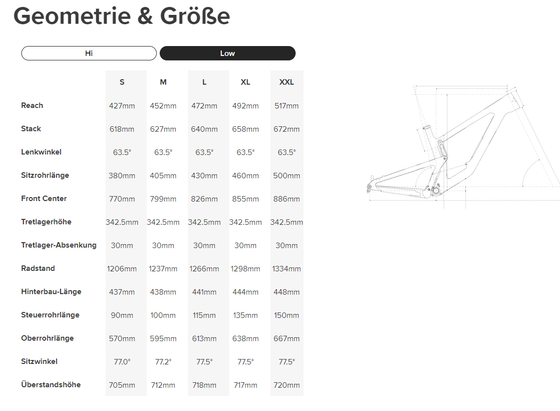 Der steile Sitzwinkel hält den Fahrer auf den steilen Anstiegen, die zu den noch steileren Abfahrten führen, immer zentral in der richtigen Position. Der Sitzwinkel wird mit zunehmender Rahmengröße steiler, sodass die Balance in jeder Größe passt.