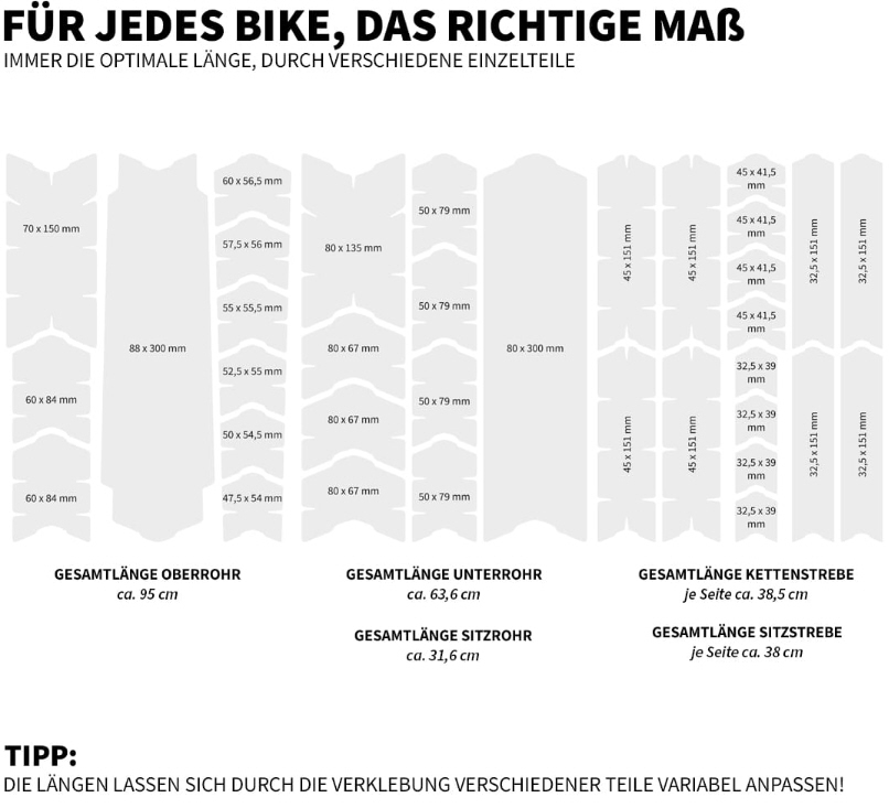 - Perfekte Passform: Schutz für Oberrohr, Unterrohr und Hinterbau.