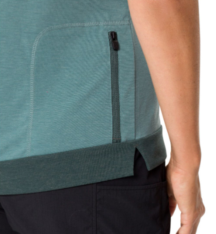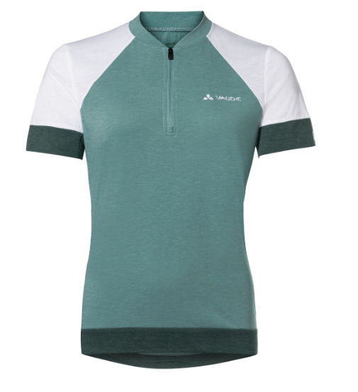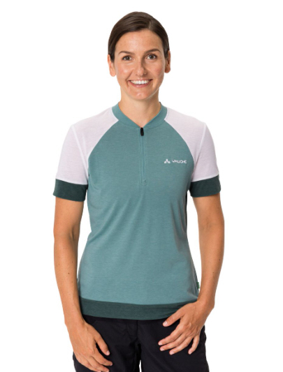 VAUDE Mountainbike-Klassiker. Das bequeme Damen Bikeshirt mit Stehkragen und kurzem Front-RV ist leger geschnitten, leicht kühlend und geruchshemmend. Damit trägst Du das Monte Altissimo-Feeling vom Gardasee auch auf der Feierabendrunde vor Deiner Haustür. Das funktionelle drirelease® Hauptmaterial ist leicht und schnelltrocknend und der Woll-Anteil sorgt für einen angenehm natürlichen Griff und für eine effektive Regulierung des Körperklimas. Die Verarbeitung mit Flatlocknähten vermindert unangenehme Reibung auf der Haut. . In der kleinen Reißverschlusstasche am Rücken verstaust Du Wertgegenstände für den schnellen Zugriff. Das nach dem strengen Umweltstandard bluesign® system zertifizierte Material trägt sich angenehm leicht und bietet höchste Funktionalität. Wolle ist zudem ein nachwachsender Rohstoff und schont somit die fossilen Ressourcen.